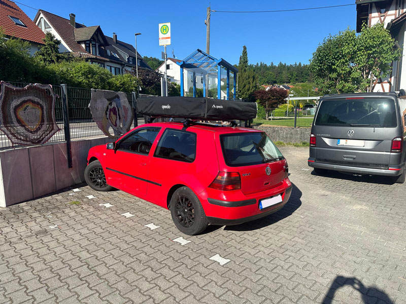 Cool, da ich selbst einen Golf 4 fahre und mit dem Gedanken spiele, mir ein Qeedo Freedom Hybrid 2 zuzulegen, interessiert mich natürlich sehr, wie dein Setup bei dir bisher performt hat. Halten die Klemmträger? Gibt es Dellen oder Verformungen am Dach?
