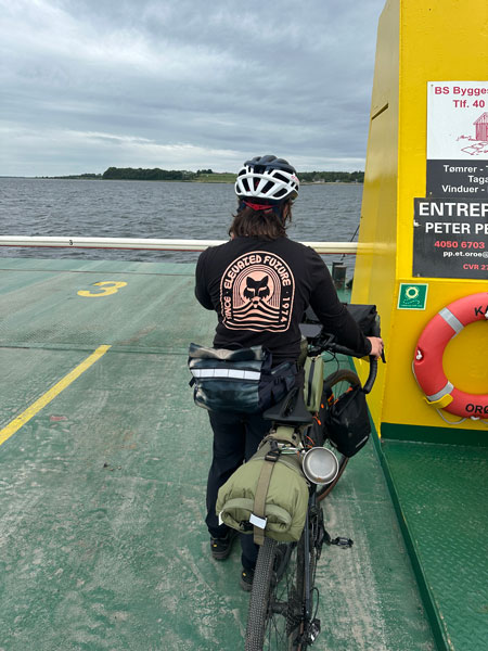 Am nächsten Tag kamen wir nach wenigen Kilometern an die Fähre zur Insel Orø. Wir hatten eigentlich geplant weiter nach Norden zu fahren, allerdings benötigten wir noch immer einen Supermarkt und die kurze Überfahrt nach Orø versprach einen zeitnahen Einkauf und nach etwas Hin und Her entschieden wir uns überzusetzen. Die Fahrt dauerte nicht lange, die Insel war in Sichtweite.