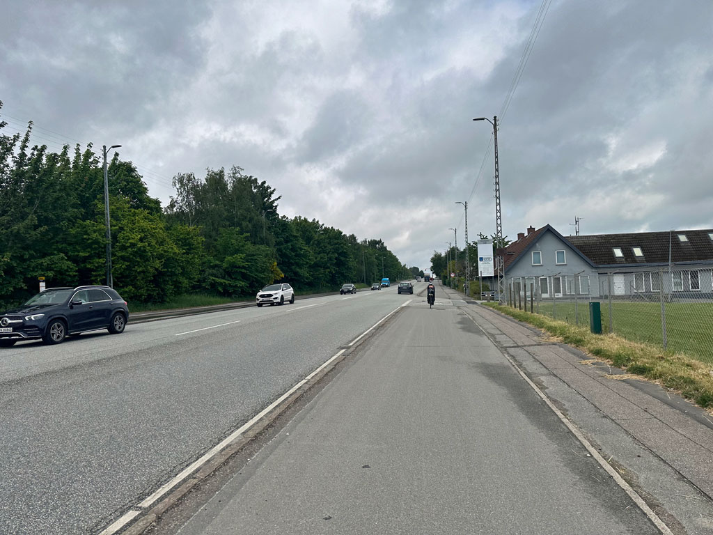 Wir wollten in Roskilde in den Rundkurs einsteigen, mussten aber erstmal nach dorthin kommen. Die Anreise mit der Bahn wäre umständlich (vier oder fünf Umstiege) und vor allem unwirtschaftlich gewesen. Deshalb wählten wir den Flixbus, der uns allerdings nur bis Kopenhagen brachte. Komoot verriet uns, dass es von der Bushaltestelle in Dänemarks Hauptstadt bis nach Roskilde nur 31,5 Kilometer sind. Die Fahrzeit für die fast kerzengerade Strecke ohne wirkliche Höhenunterschiede wurde mit zwei Stunden und 15 Minuten angegeben. Ein Blick in Google Streetview zeigte zudem, dass durchgehend ein Radweg neben der vierspurigen Straße verläuft. Das versprach Sicherheit, wenngleich nicht unbedingt Schönheit.